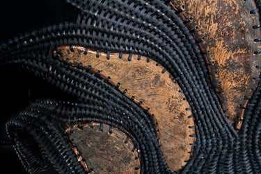 Her pieces are named for the books she listens to while she works, allowing the viewer to draw their own conclusions about the shapes and forms they may represent. Donya prefers to not influence the experience or relationship that each viewer might have with any of her pieces.