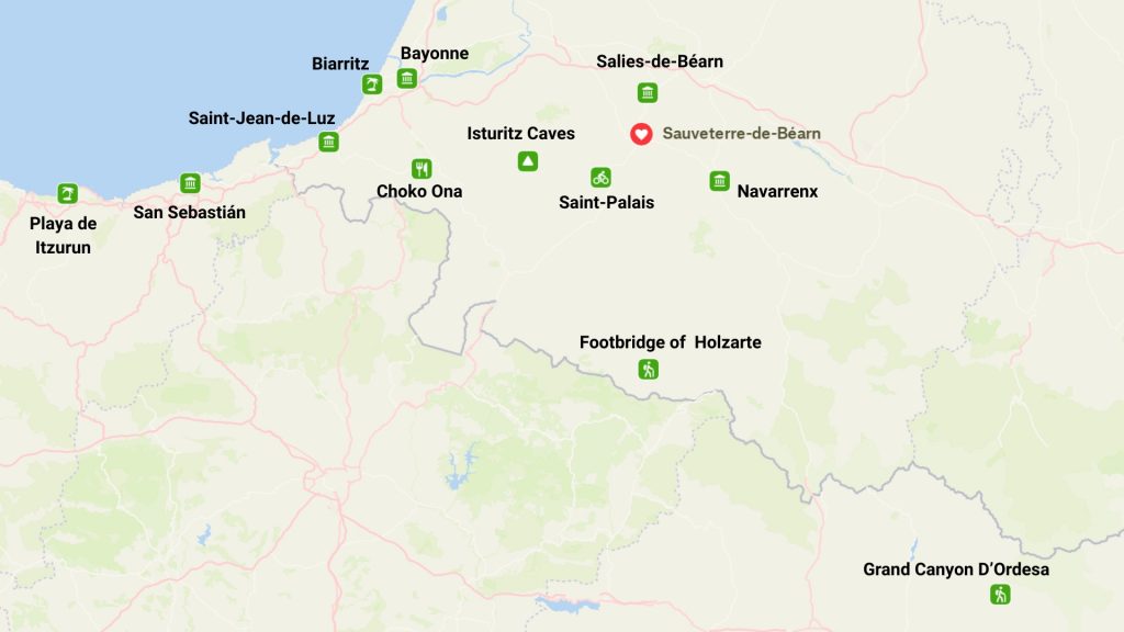 You’re staying in a part of Europe where you can spend the morning in a medieval village, have lunch on the Atlantic coast, and be back for dinner with mountain air in your lungs. Within about 1.5 hours drive, you’ll find caves with prehistoric art, iconic Basque coastal towns, beautiful mountain hikes, surf beaches, and food that makes people consider moving here permanently.